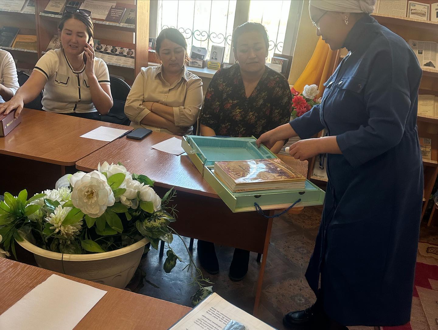 Также в библиотеке сняли познавательный видеоролик о пользе чтения книг и презентацию на тему «Способы заинтересовать ребенка чтением книг». А еще: «Не забывайте воспитание своих детей, родителей!» «, пересмотрели книжные выставки «Книга — ярмарка для детей».» Библиотека представила книгу «Азбука мудрости» с уникально иллюстрированной, инновационной разговорная ручкой, 3D, 4D книгами, обложками и детскими газетами. В конце интервью сделали доклад на тему «Вред нечитания книг», призвали объединиться как общество, читать книгу самим, быть примером для своих детей и объединяться для достижения хороших результатов.
